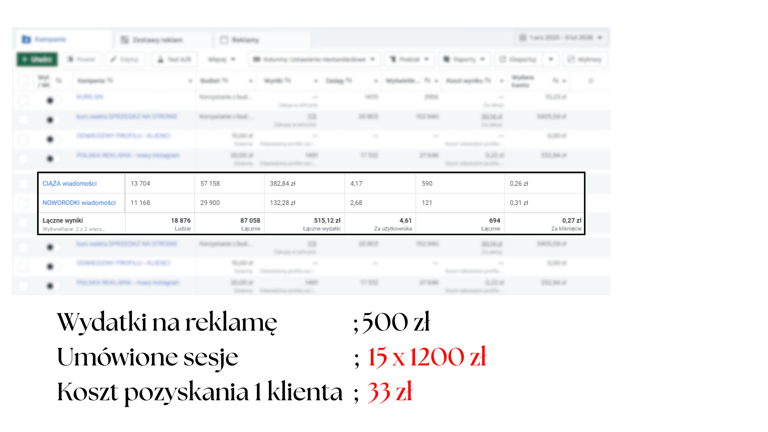 za pomocą reklam na Facebooku i Instagramie, bez chaosu, zgadywania